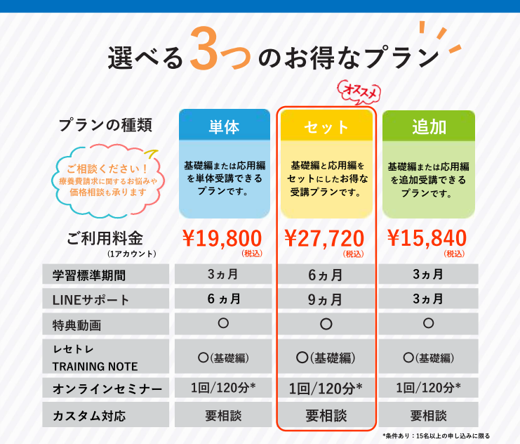 オンラインセミナー*15名以上 |